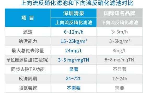 基于“上向流濾池”技術(shù),清泉開發(fā)了上向流反硝化濾池(具有同時去除 SS、TP及TN的功能),主要特點為: