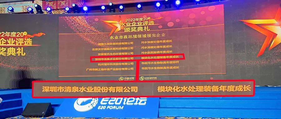 在本次論壇中,深圳清泉憑借優(yōu)異的綜合表現(xiàn)榮獲“水業(yè)市政環(huán)境領域領先企業(yè)——模塊化水處理裝備年度成長”獎項。此次獲獎,是對深圳清泉2022年在市政環(huán)境領域快速發(fā)展及領先地位的認可。